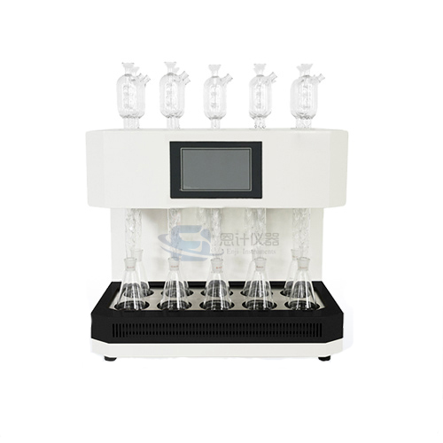 智能COD回流消解儀采用PLC工控系統(tǒng)進行定時控制單路單控、一鍵啟動、自動控溫、微沸狀態(tài)120分鐘自動倒計時,可對10個消解回流裝置同時進行加熱。達到節(jié)能、減低電力負荷、提高效率的目的。采用玻璃毛刺回流管代替球形回流管,并以風冷技術取代全水冷卻方式,既可以節(jié)水又能使儀器規(guī)范化,同時還提高了儀器使用的安全性。儀器的化學溶液配制、操作和COD的計算完全遵照HJ828-2017,低于50mg/L的COD水樣可通過稀釋滴定劑和氧化劑來提高精確度,高于700mg/L的COD水樣,可以通過水樣的比例稀釋來完成測定。